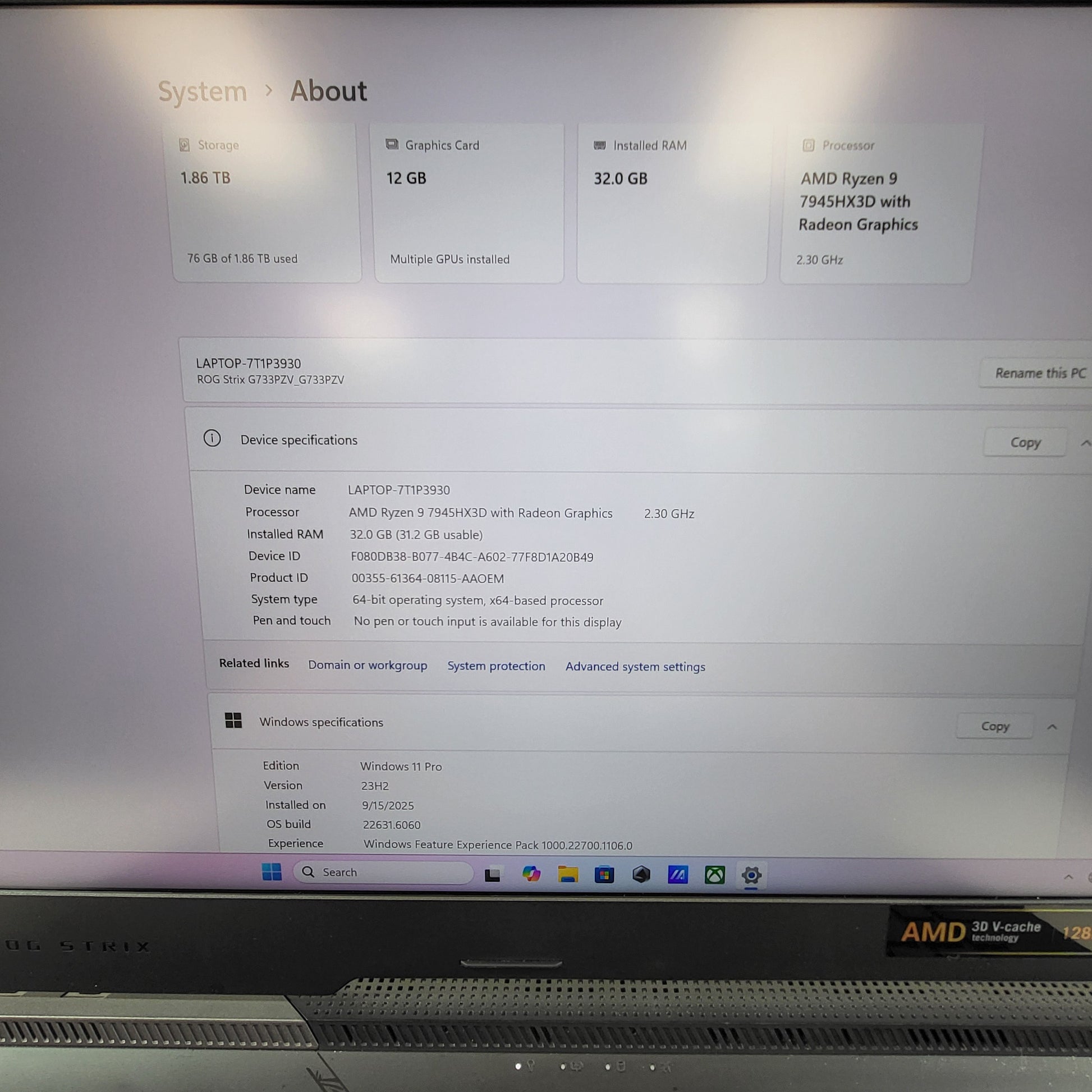 | Processor | Ryzen 9 7945HX3D |