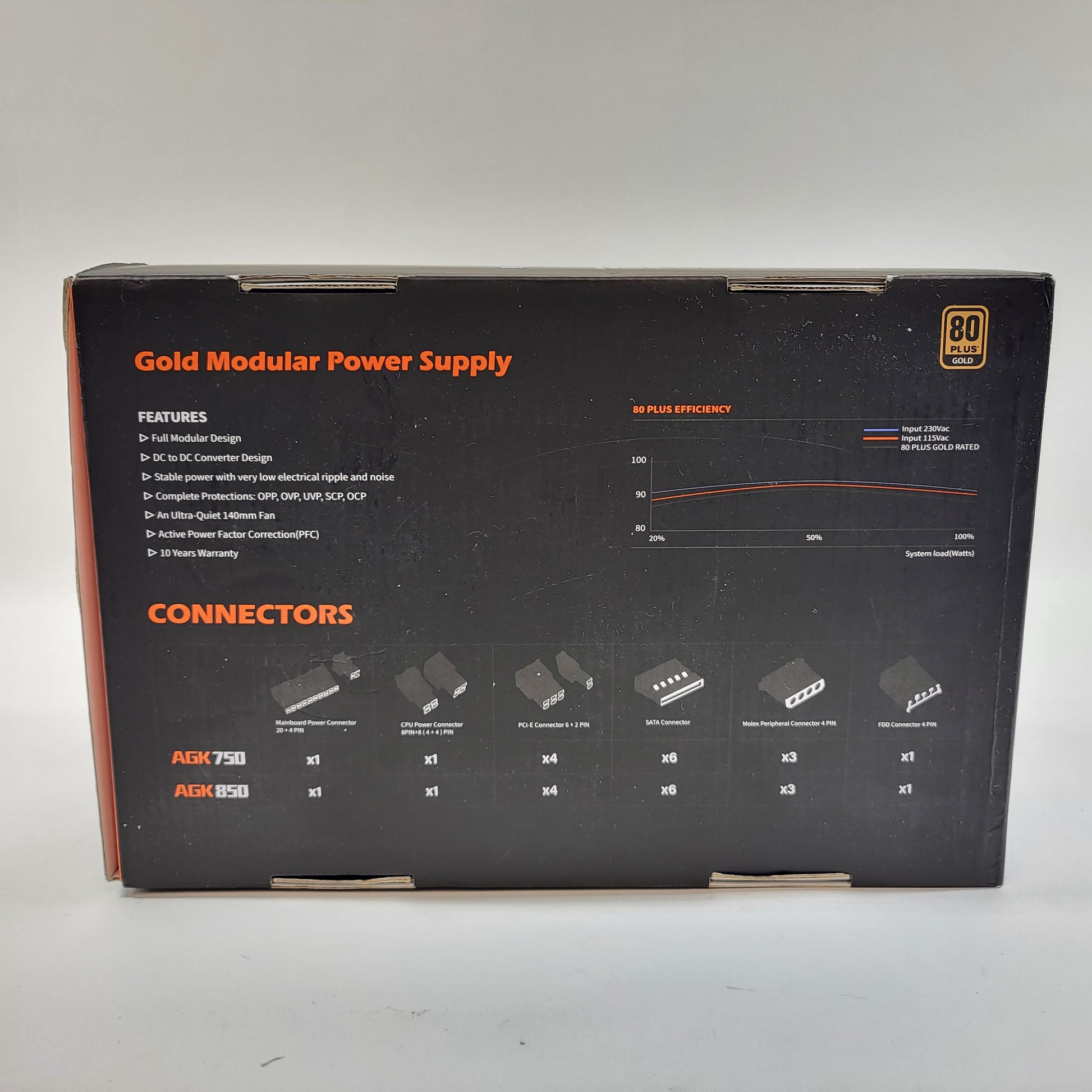 New AresGame AGK850 AGK850 80 Plus Gold 850W Fully Modular Power Supply Open Box