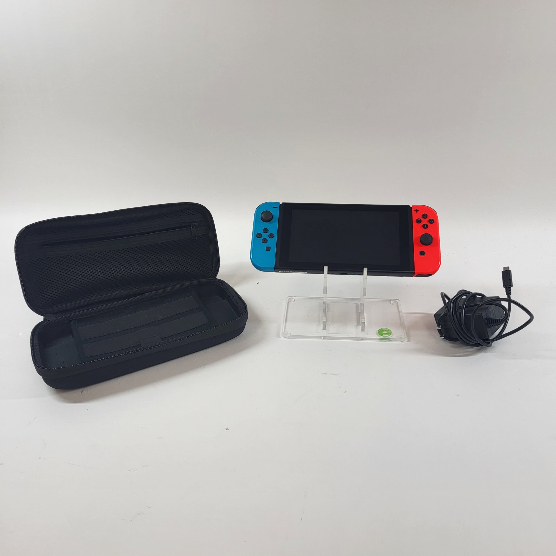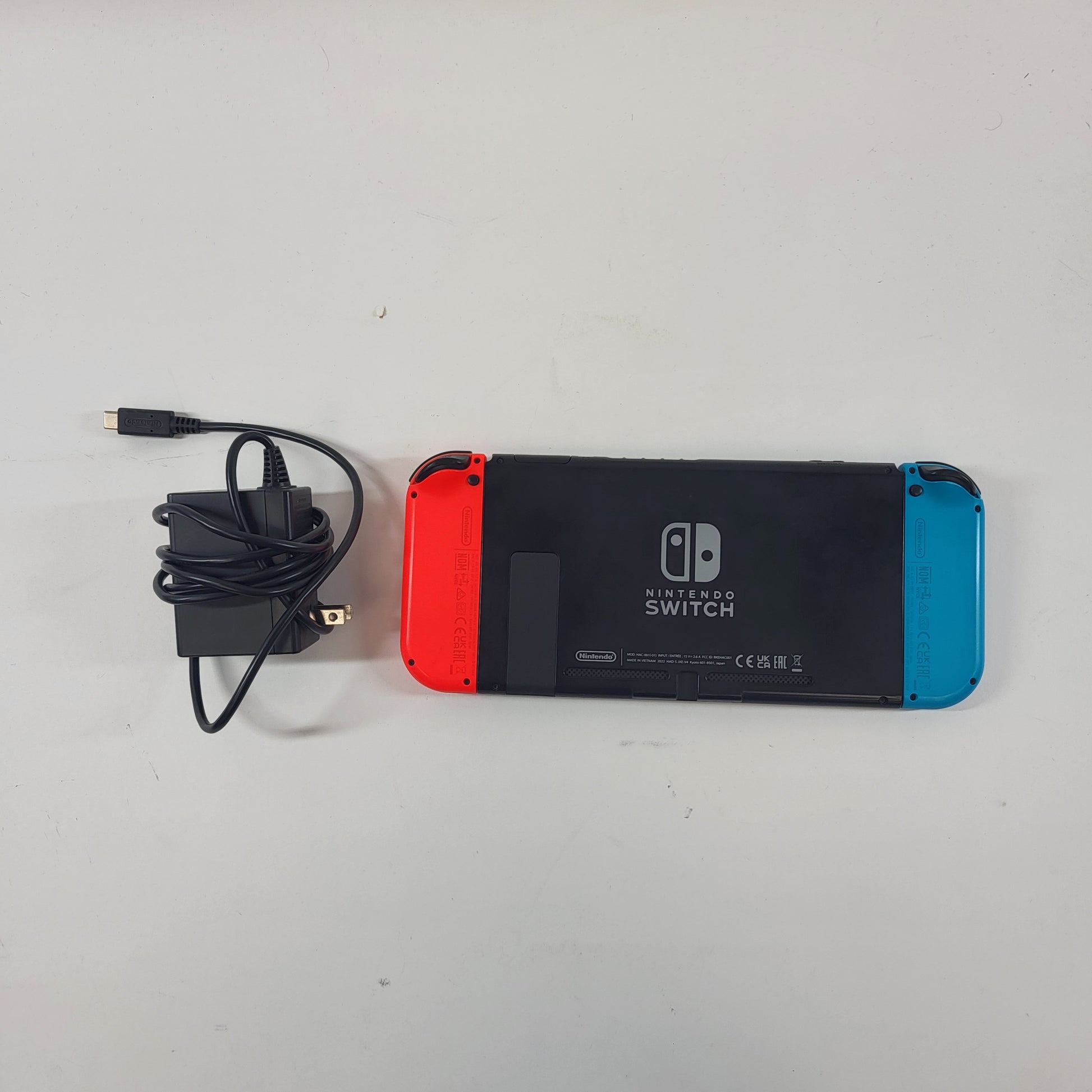 This console is in good cosmetic condition. The top, bottom and sides all have minor, but noticeable, scuffs and wear. Please view our close up photos, as these are taken of the actual item being offered for sale. The cartridge slot is in good condition with the cover in-tact. The joy-cons are in good condition with some minor, but noticeable, scuffs and wear.